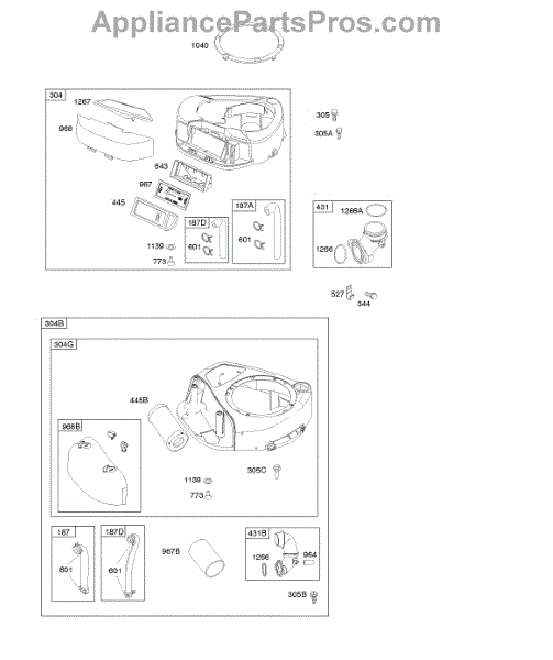 Parts for Briggs & Stratton 31A507-0137-G5: Air Cleaner, Blower Housing, Exhaust System, Fuel Supply Parts