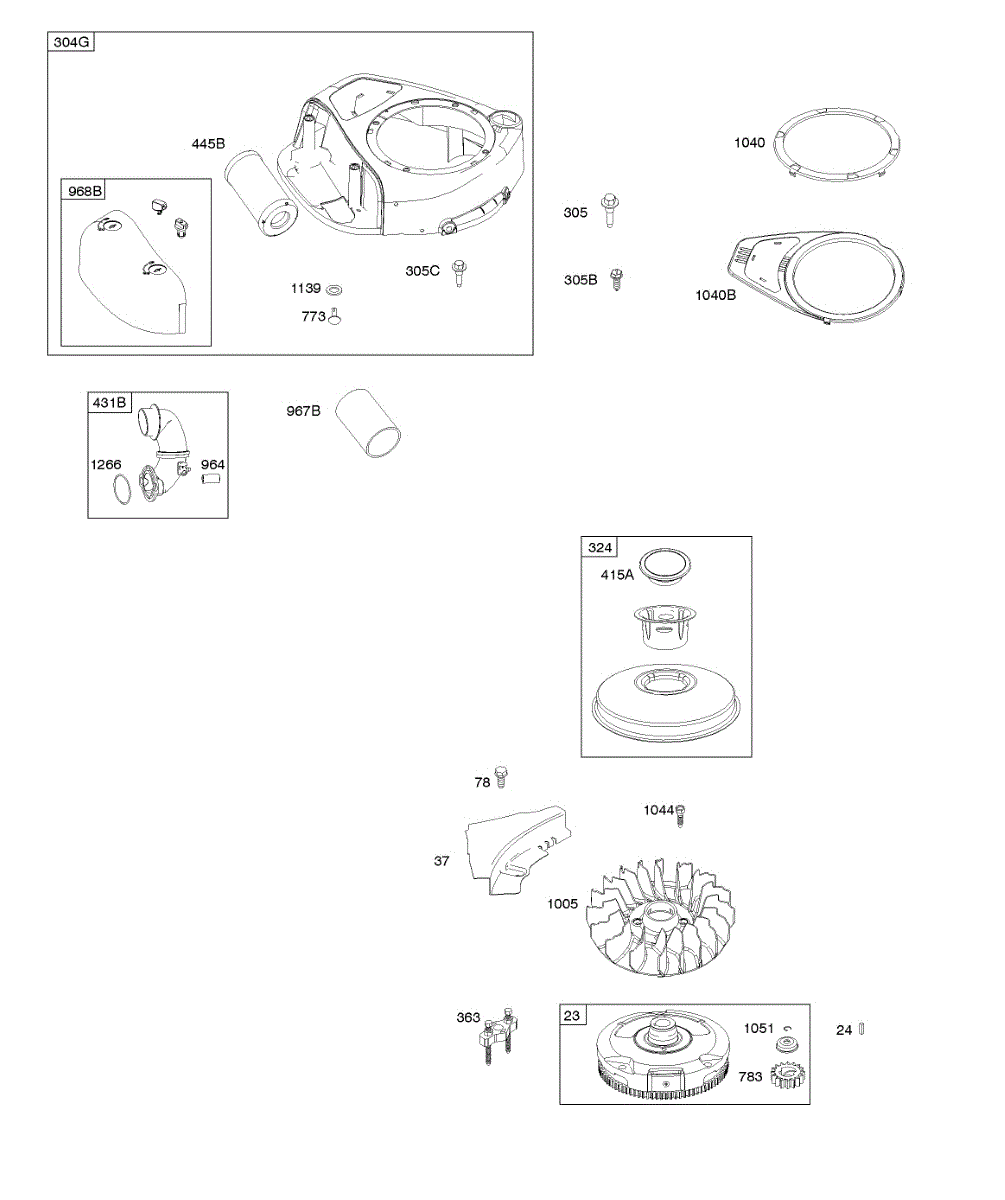 Parts for Briggs & Stratton 31R877-0021-B1: Air Cleaner, Blower Housing, Flywheel Parts