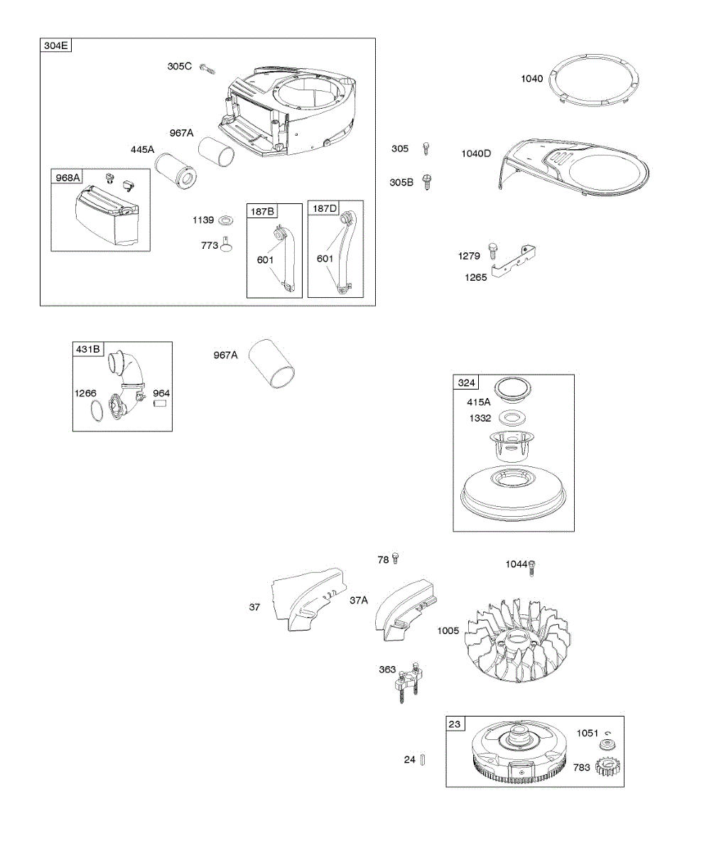 Parts for Briggs & Stratton 31S877-0001-G1: Air Cleaner, Blower Housing, Flywheel Parts