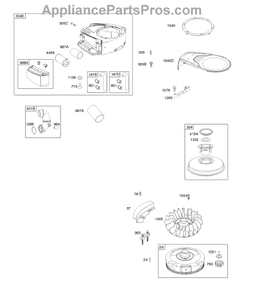 Parts for Briggs & Stratton 31S977-0005-G1: Air Cleaner, Blower Housing, Flywheel Parts