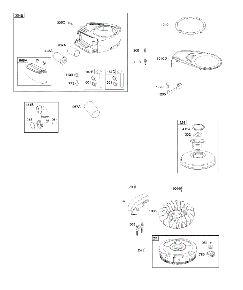 Parts for Briggs & Stratton 31S977-0009-G1: Air Cleaner, Blower Housing, Flywheel Parts