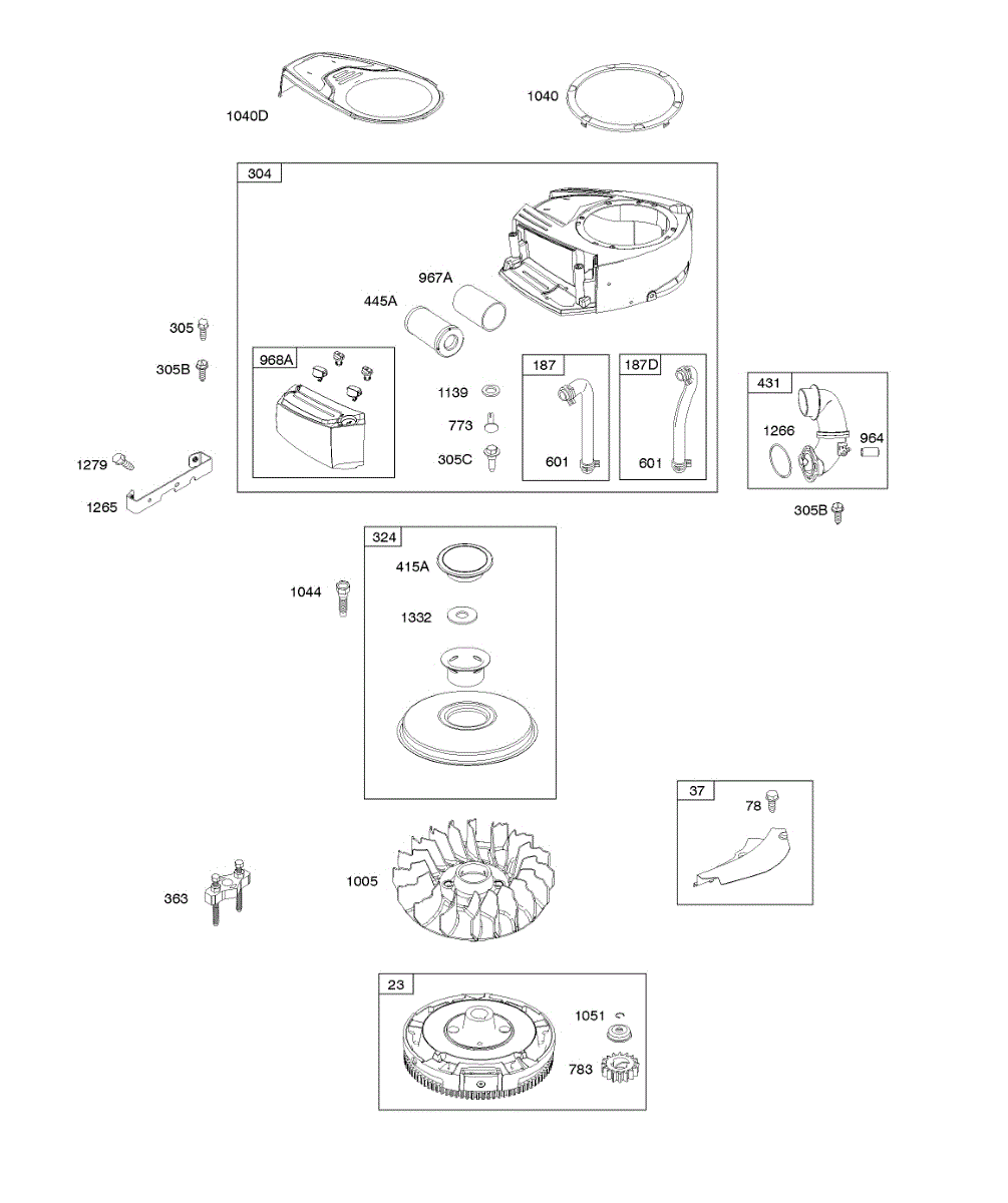 Parts for Briggs & Stratton 33S877-0017-G1: Air Cleaner, Blower Housing, Flywheel Parts