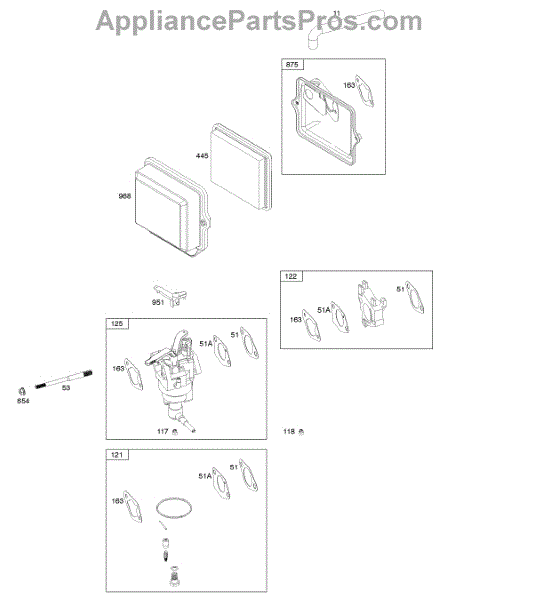 Parts for Briggs & Stratton 250035-0110-B2: Air Cleaner, Carburetor Parts