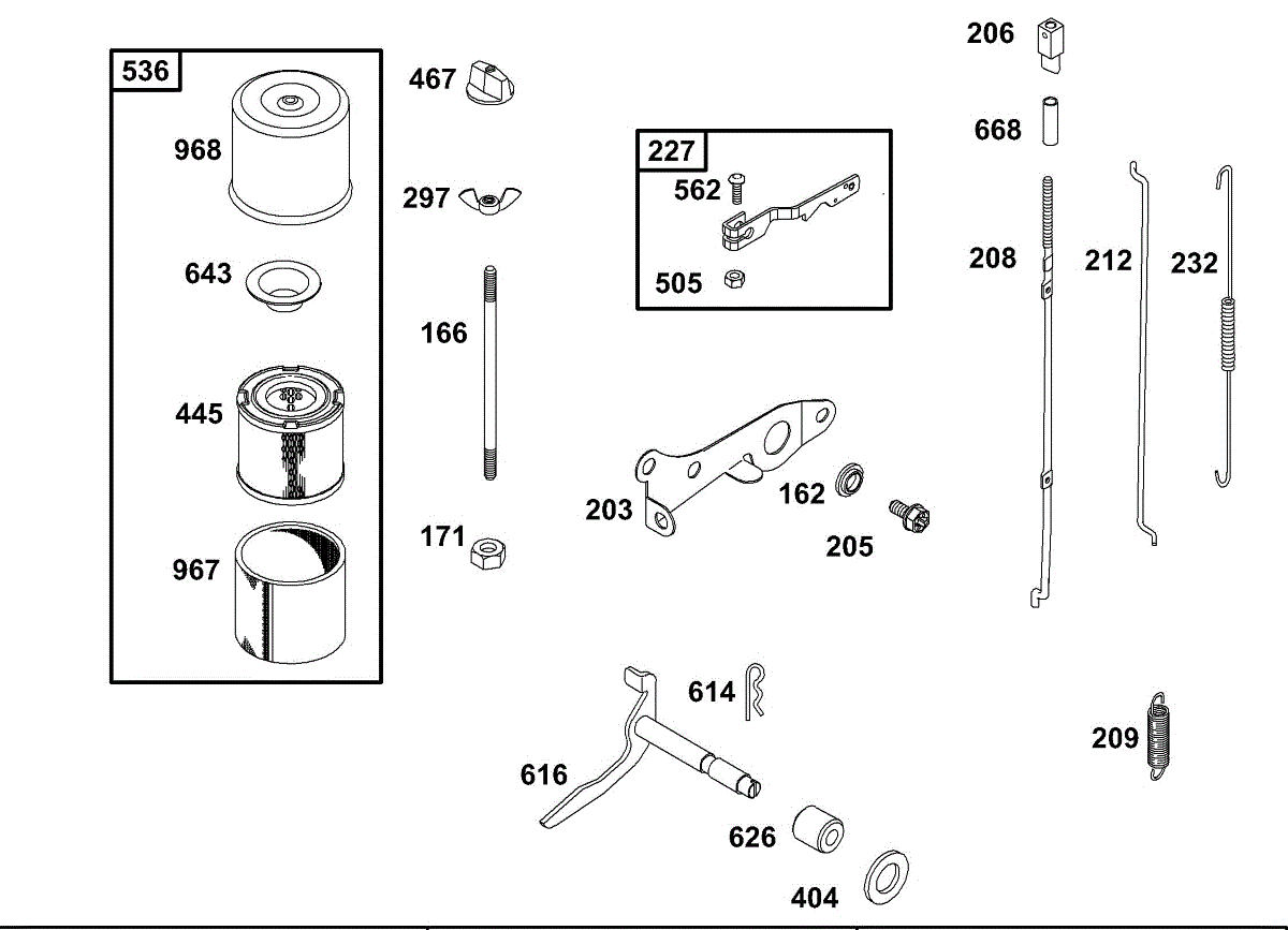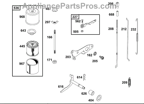 Parts for Briggs & Stratton 32K437-0112-01: Air Cleaner, Control Rod, Springs Parts