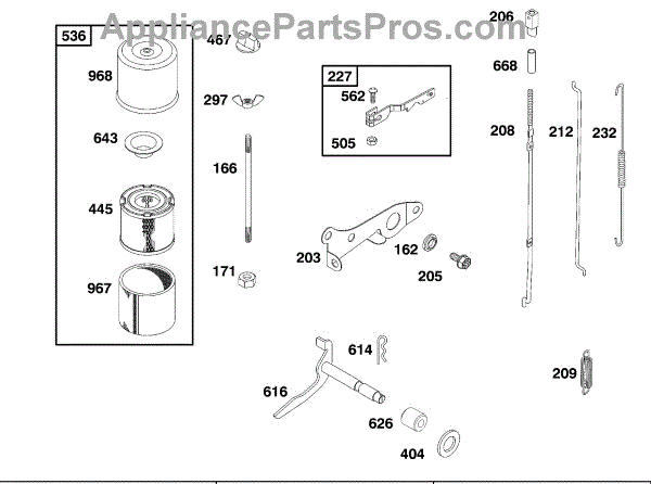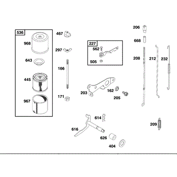 Parts for Briggs & Stratton 32K437-0112-01: Air Cleaner, Control Rod, Springs Parts
