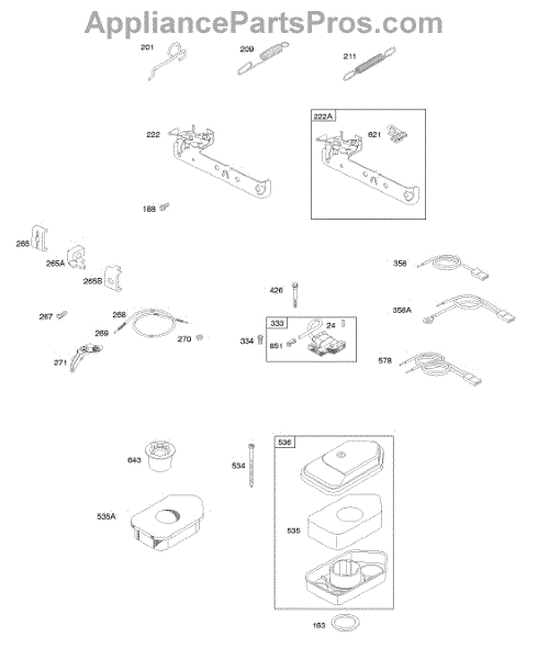 Parts for Briggs & Stratton 098902-0312-02: Air Cleaner, Controls, Governor Spring, Ignition Parts