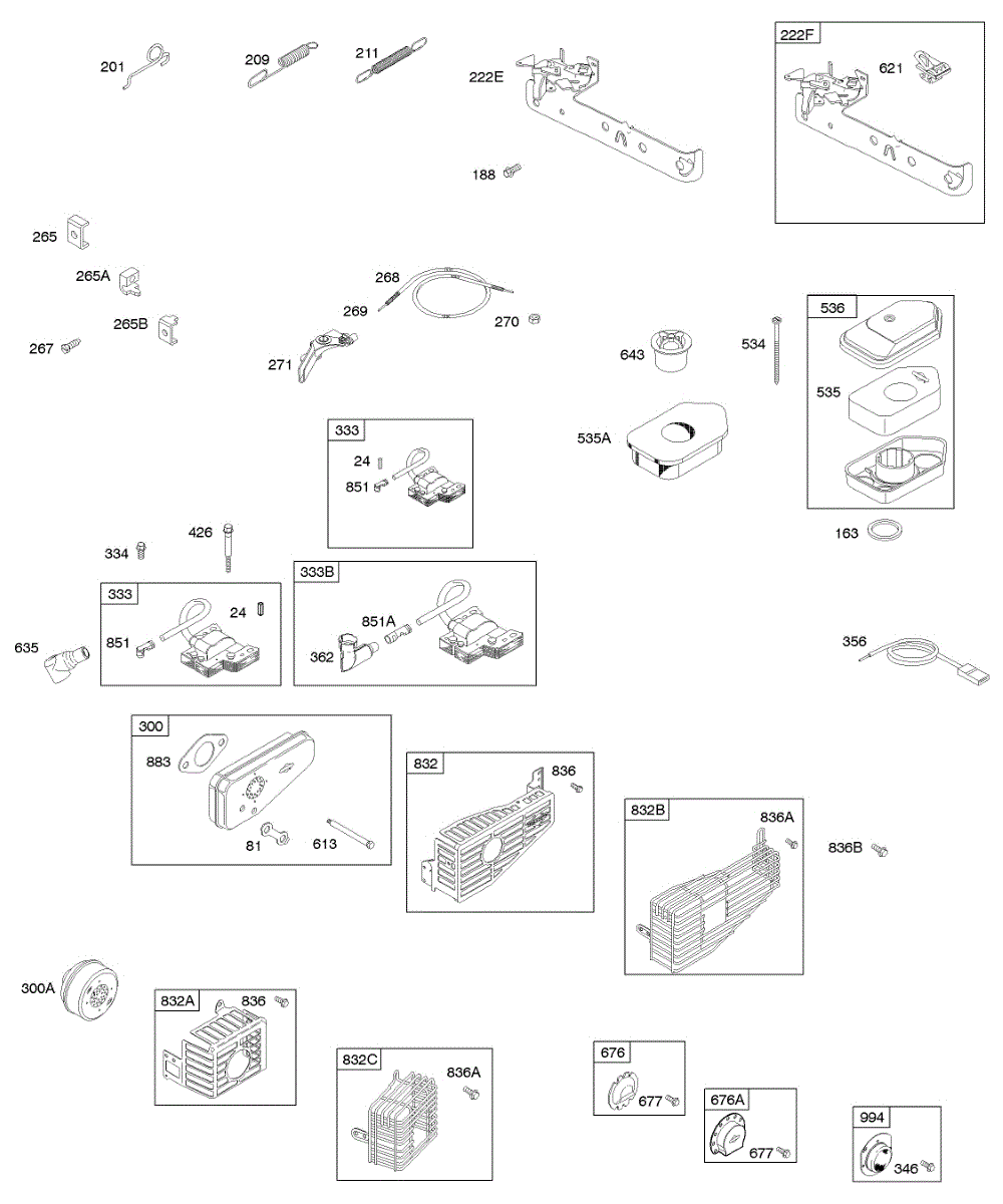 Parts for Briggs & Stratton 09D982-2016-E1: Air Cleaner, Controls, Exhaust System, Governor Spring, Ignition Parts