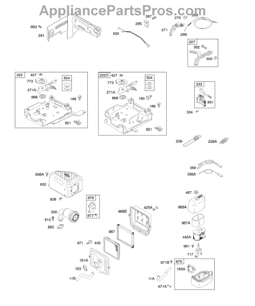 Parts for Briggs & Stratton 121A12-0028-E1: Air Cleaner, Controls, Exhaust System, Governor Spring, Ignition Parts