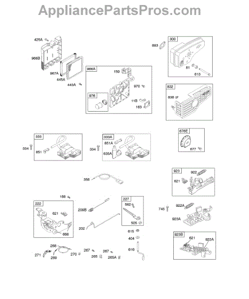 Parts for Briggs & Stratton 121H02-0110-D1: Air Cleaner, Controls, Electrical, Exhaust System, Flywheel Brake, Governor Spring, Ignition Parts