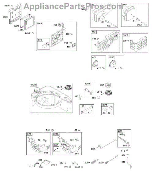 Parts for Briggs & Stratton 122H02-0117-D1: Air Cleaner, Controls, Exhaust System, Fuel Supply, Governor Spring Parts