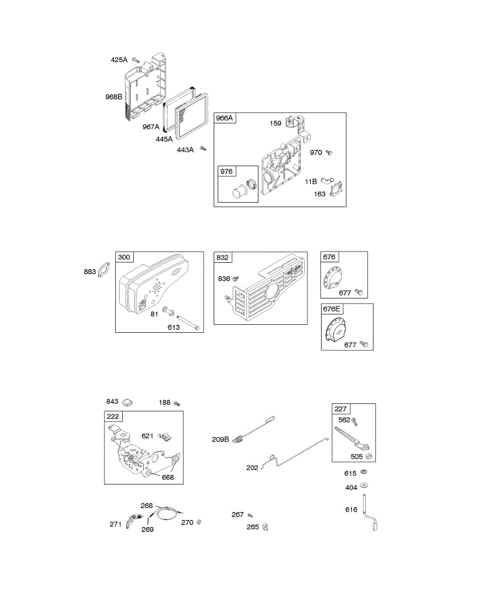 Parts for Briggs & Stratton 125H07-0114-D1: Air Cleaner, Controls, Exhaust System, Governor Spring Parts