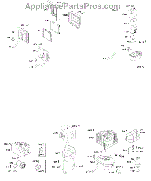 Parts for Briggs & Stratton 126312-0236-E8: Air Cleaner, Controls, Exhaust System Parts