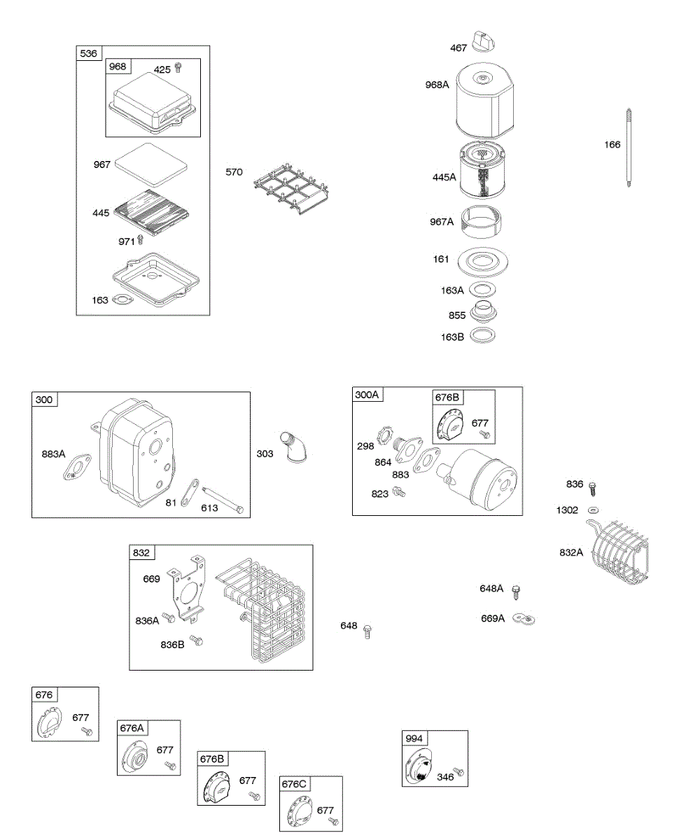 Parts for Briggs & Stratton 091212-1379-E1: Air Cleaner, Exhaust System Parts