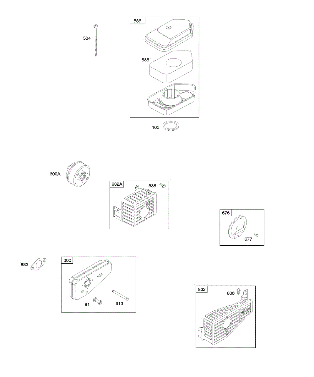 Parts for Briggs & Stratton 10H902-0216-E1: Air Cleaner, Exhaust System Parts