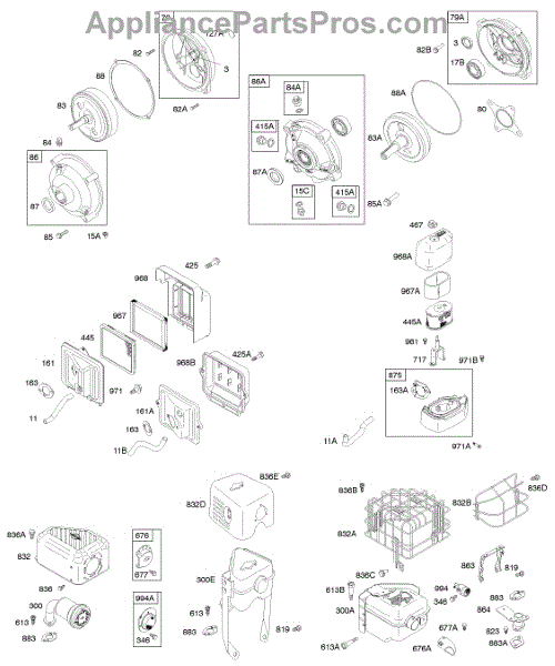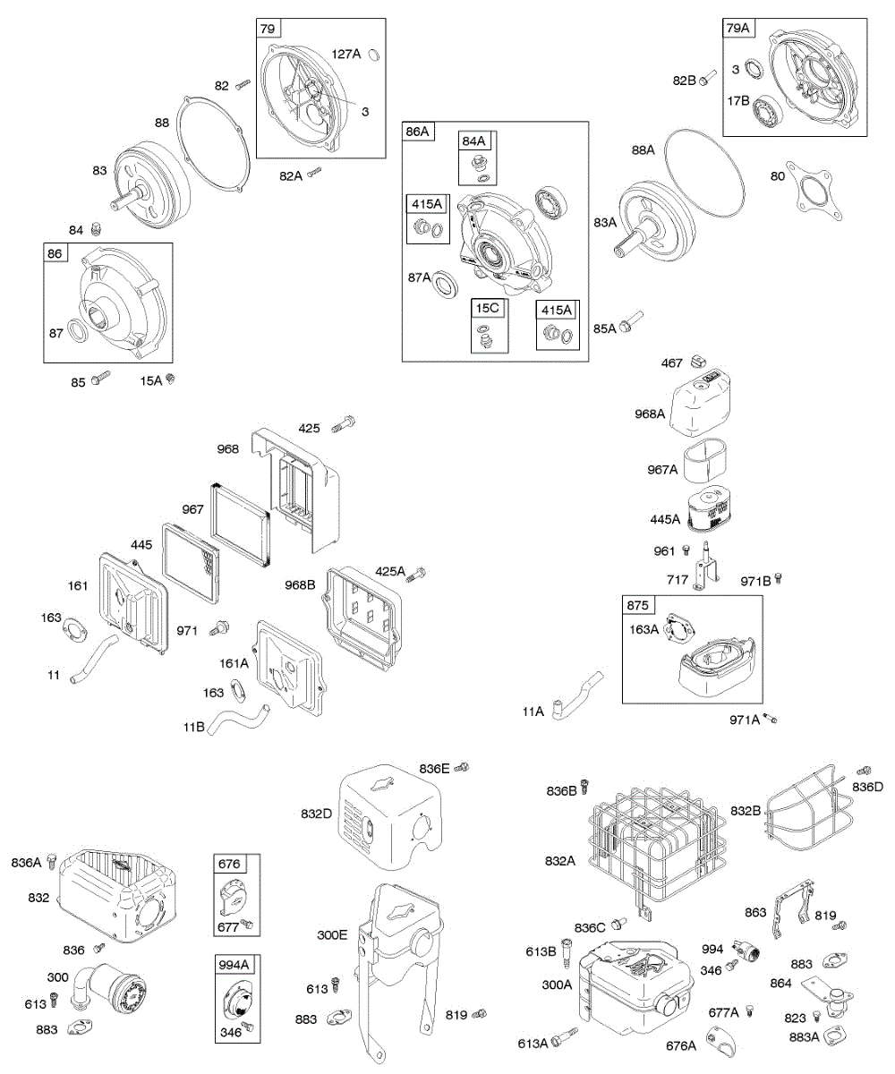 Parts for Briggs & Stratton 121337-0250-E1: Air Cleaner, Exhaust System, Gear Reduction Parts