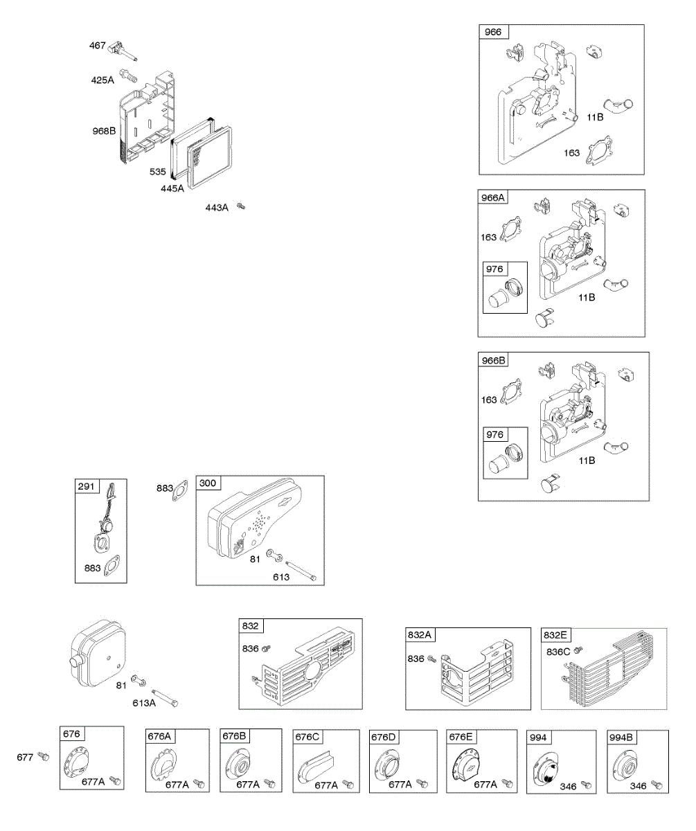 Parts for Briggs & Stratton 122T02-1815-B1: Air Cleaner, Exhaust System Parts