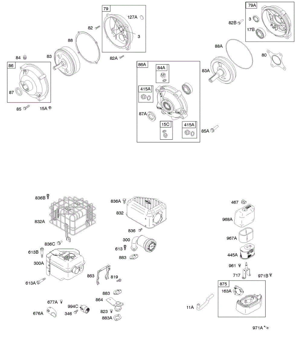 Parts for Briggs & Stratton 123352-0049-B2: Air Cleaner, Exhaust System, Gear Reduction Parts