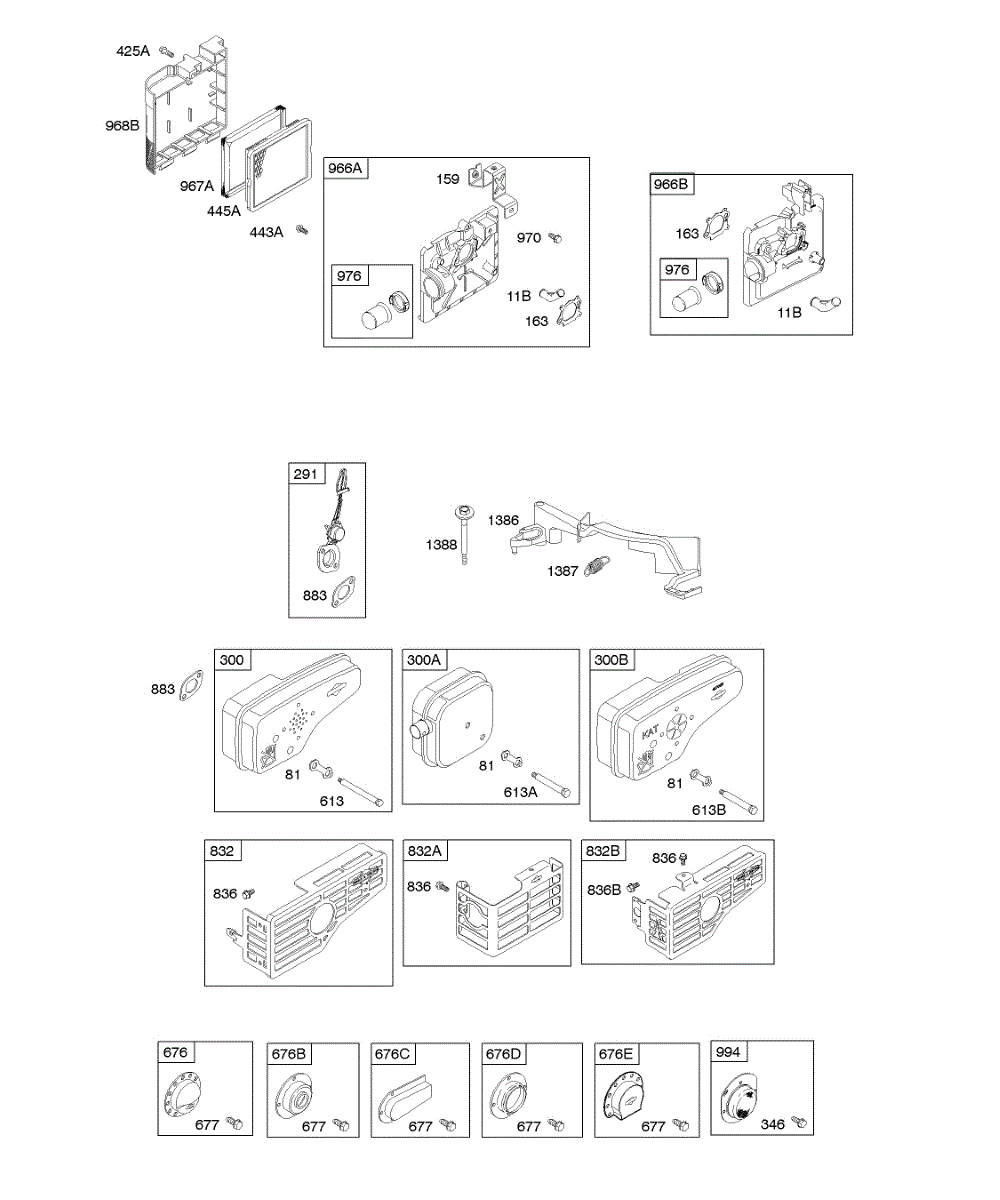 Parts for Briggs & Stratton 128802-1940-A1: Air Cleaner, Exhaust System Parts