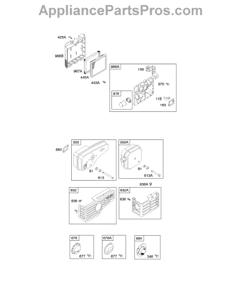 Parts for Briggs & Stratton 129882-1111-01: Air Cleaner, Exhaust System Parts