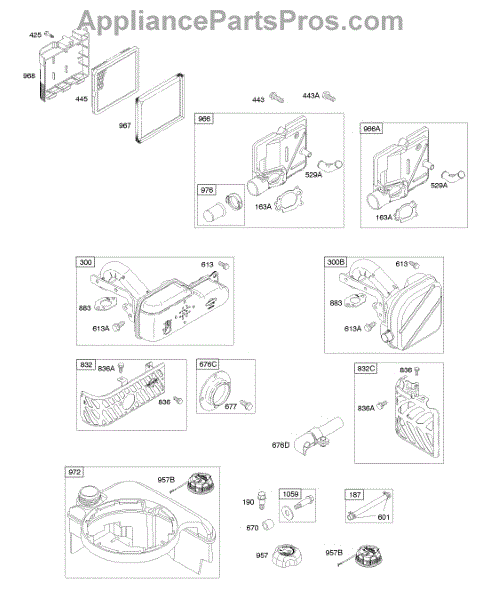 Parts for Briggs & Stratton 12J602-0121-E1: Air Cleaner, Exhaust System, Fuel Supply Parts