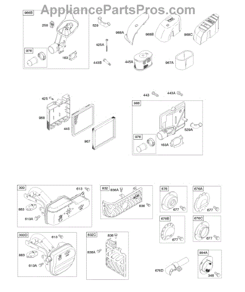 Parts for Briggs & Stratton 12Q502-0015-E1: Air Cleaner, Exhaust System Parts
