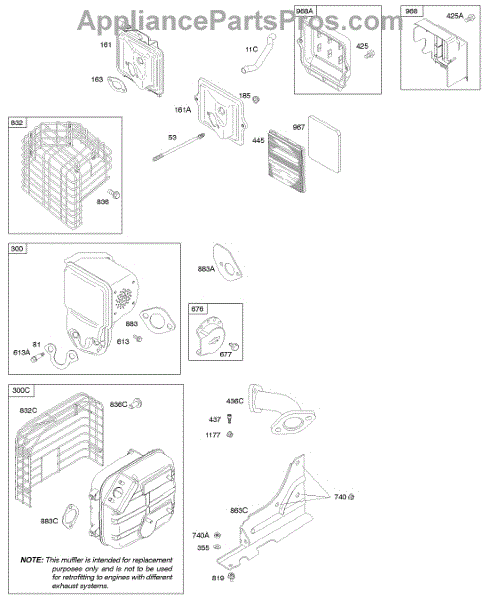 Parts for Briggs & Stratton 204412-0162-E1: Air Cleaner, Exhaust System Parts