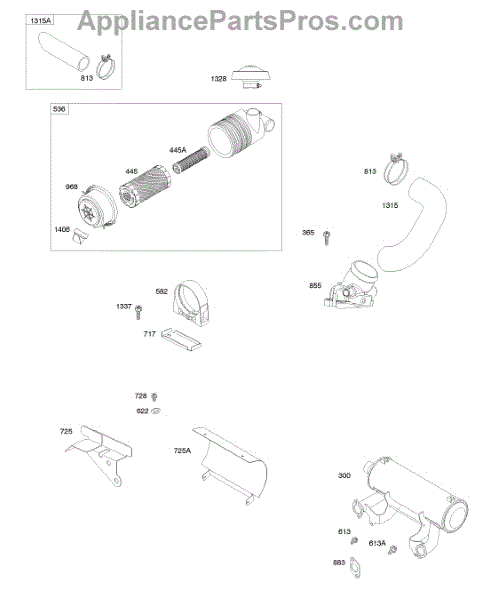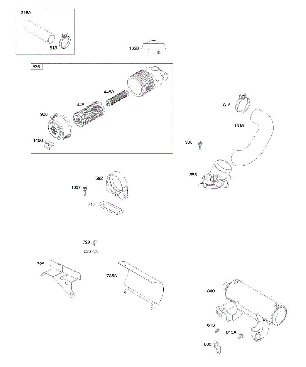 Parts for Briggs & Stratton 613177-0115-E1: Air Cleaner, Exhaust Muffler Parts