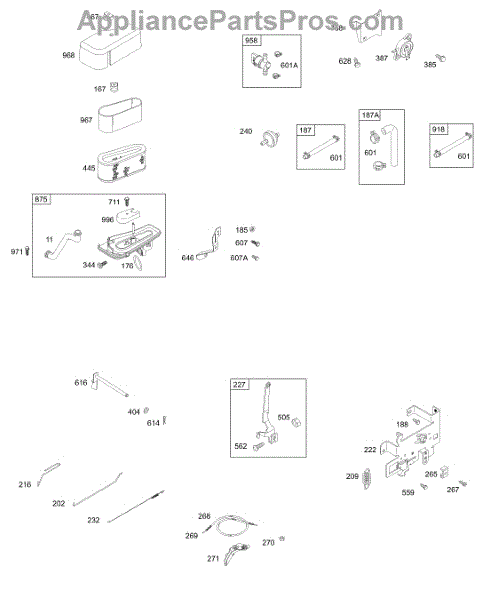 Parts for Briggs & Stratton 28S777-1148-E1: Air Cleaner, Fuel Pump, Control Bracket, Governor Spring Parts