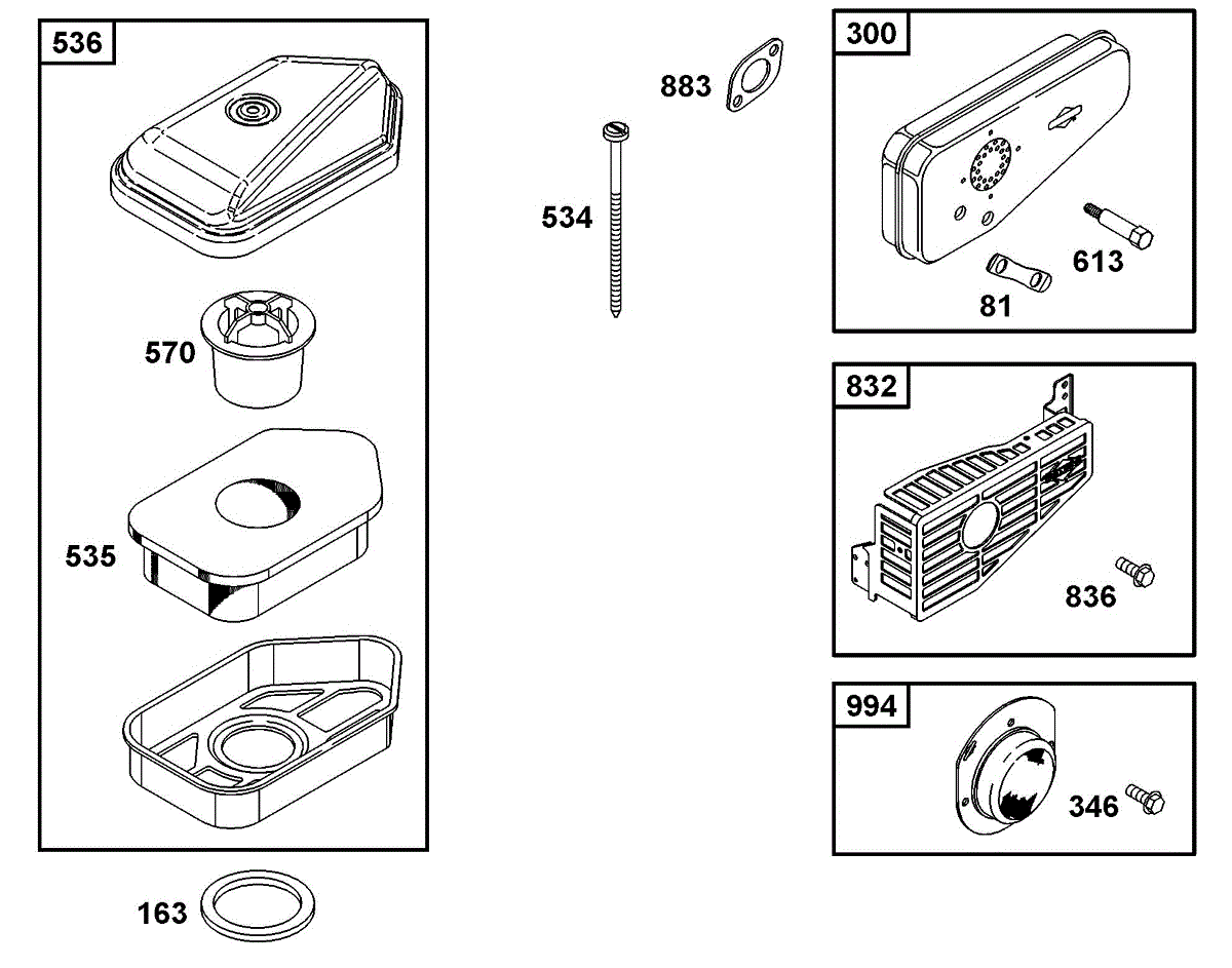 Parts for Briggs & Stratton 10C902-2002-E1: Air Cleaner Group, Muffler Group Parts
