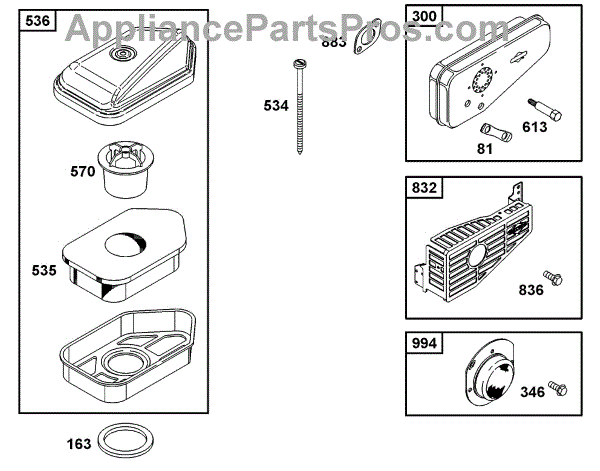 Parts for Briggs & Stratton 10C902-2035-E1: Air Cleaner Group, Muffler Group Parts