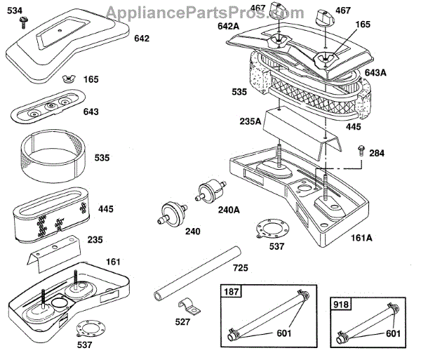 Parts for Briggs & Stratton 402707-1205-01: Air Cleaner Group,Fuel Hoses Parts