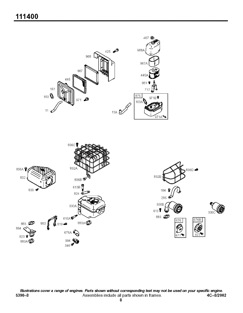 Parts for Briggs & Stratton 111432-0111-E1: Air Cleaner Groups Parts