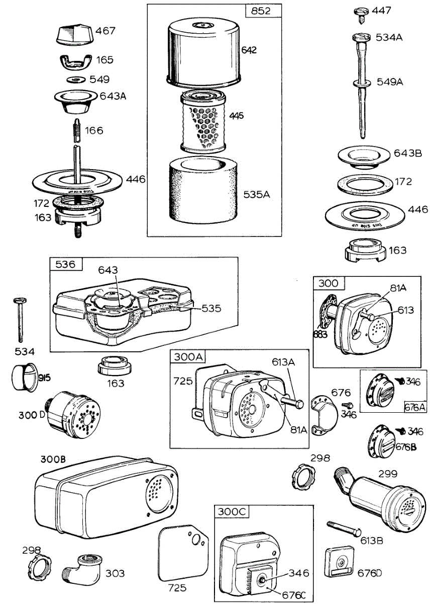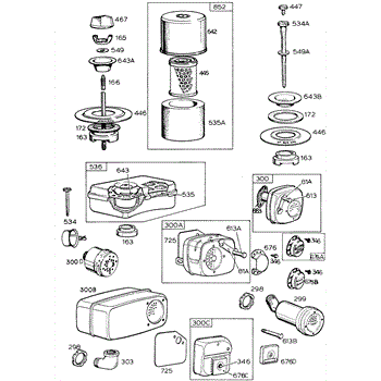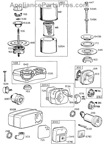 Parts for Briggs & Stratton 130202-0869-99: Air Cleaner Groups, Mufflers Parts