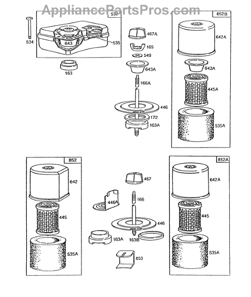 Parts for Briggs & Stratton 130232-1660-02: Air Cleaner Groups Parts