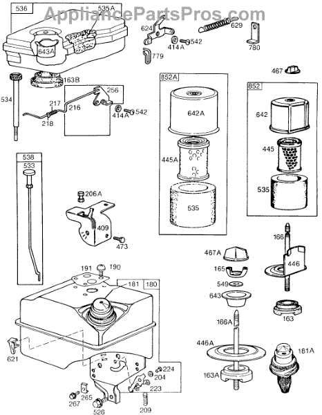 Parts for Briggs & Stratton 131232-0212-01: Air Cleaner Groups,Fuel Tank Parts