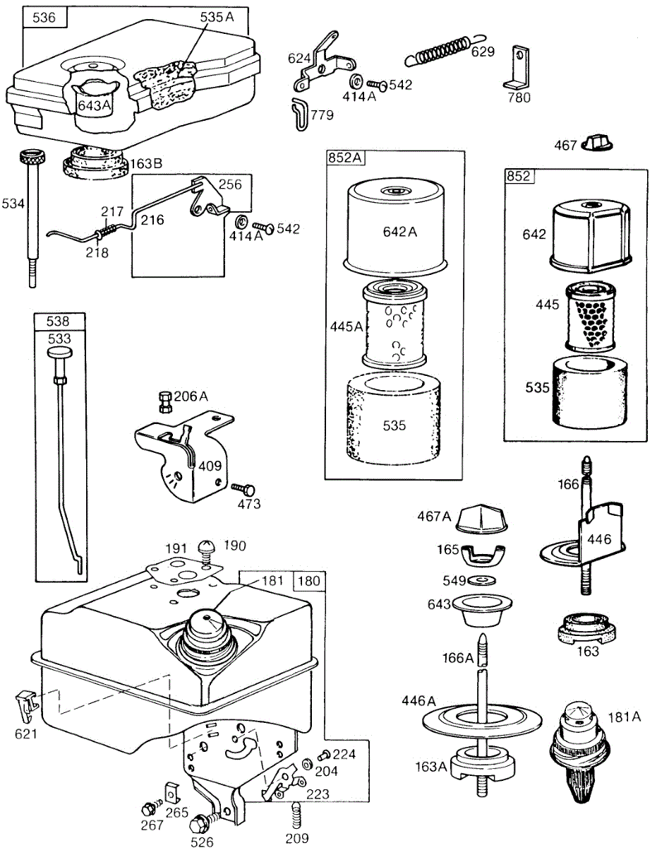 Parts for Briggs & Stratton 131232-0250-01: Air Cleaner Groups,Fuel Tank Parts
