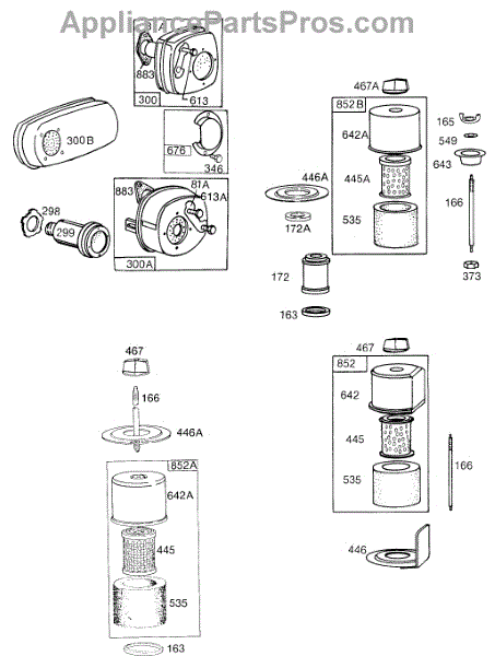 Parts for Briggs & Stratton 131431-2081-01: Air Cleaner Groups, Mufflers Parts
