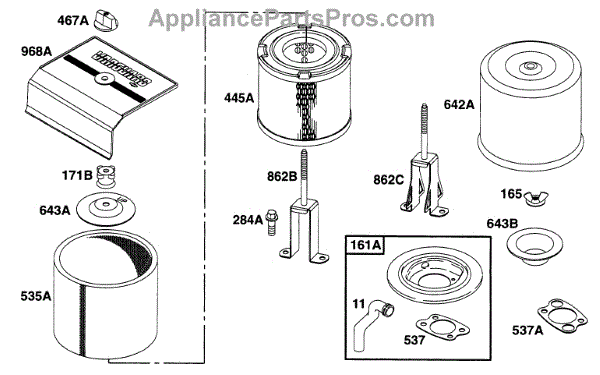 Parts for Briggs & Stratton 290447-0346-02: Air Cleaner Grp Parts