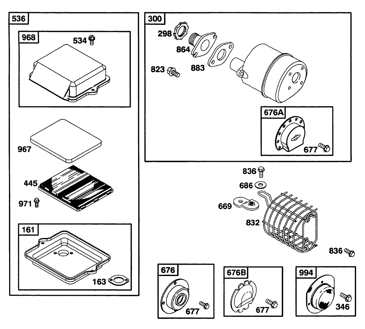 Parts for Briggs & Stratton 093232-0540-01: Air Cleaner Grp, Muffler Grp Parts