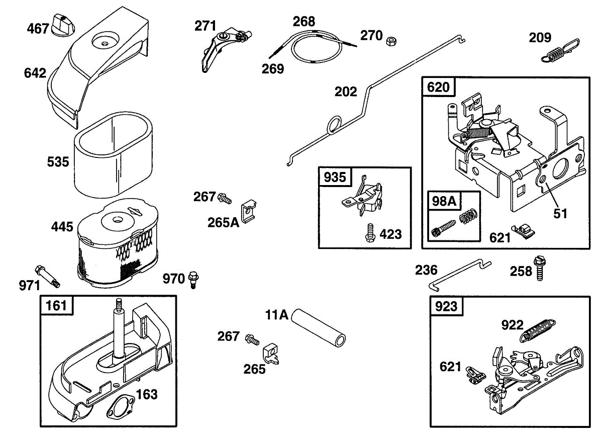 Parts for Briggs & Stratton 099777-0932-A1: Air Cleaner Grp, Controls Parts