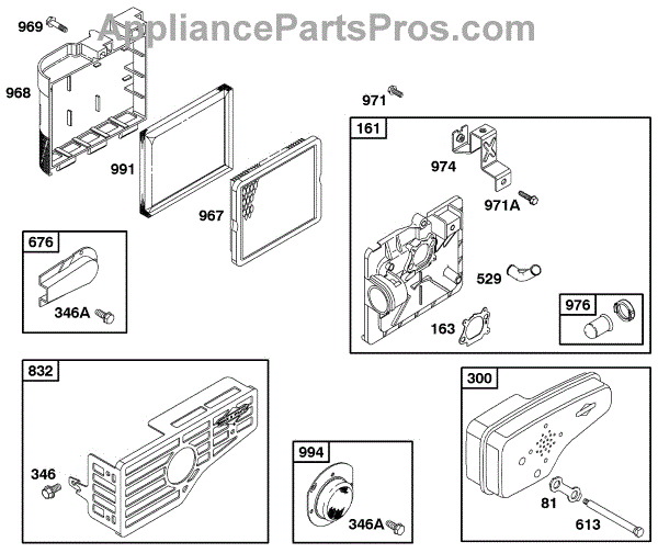 Parts for Briggs & Stratton 12E802-0620-01: Air Cleaner Grp, Muffler Grp Parts