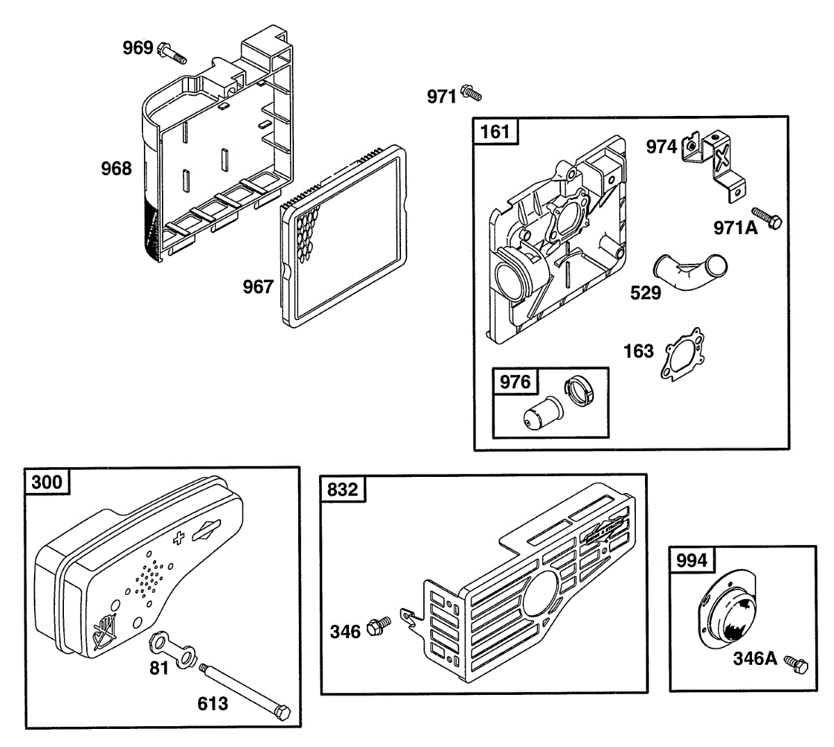 Parts for Briggs & Stratton 12S887-0871-01: Air Cleaner Grp, Muffler Grp Parts