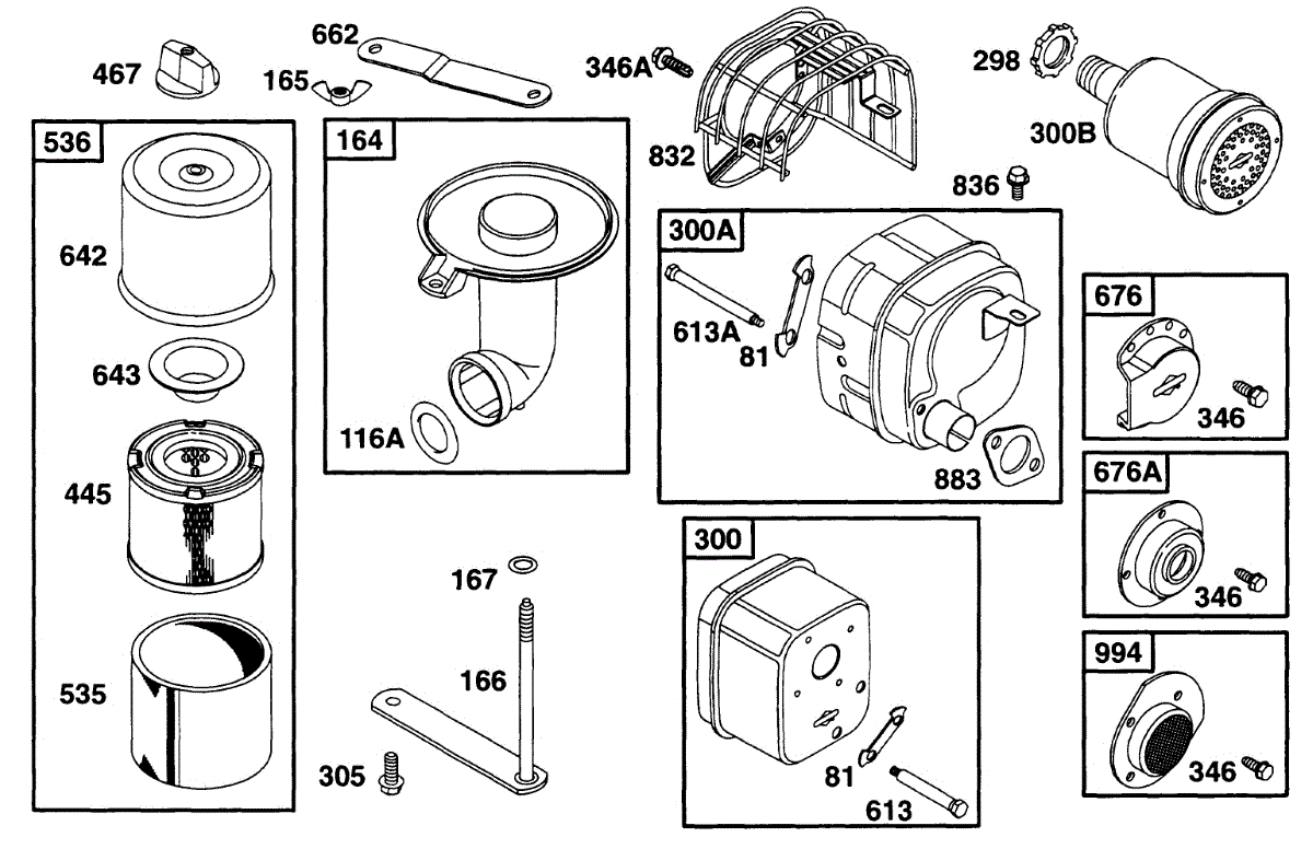 Parts for Briggs & Stratton 170402-6100-01: Air Cleaner Grp, Muffler Grp Parts