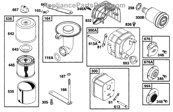 Parts for Briggs & Stratton 170432-6113-01: Air Cleaner Grp, Muffler Grp Parts