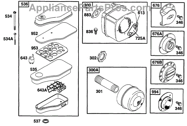 Parts for Briggs & Stratton 255702-0117-01: Air Cleaner Grp, Muffler Grp Parts