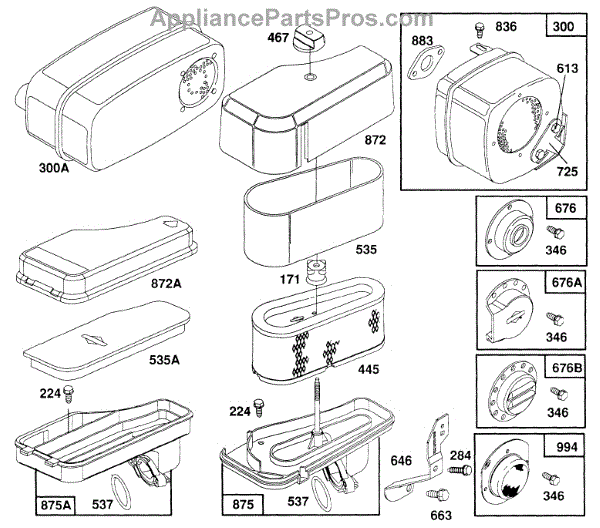 Parts for Briggs & Stratton 257707-0119-01: Air Cleaner Grp, Muffer Grp Parts