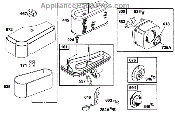 Parts for Briggs & Stratton 28A702-0102-01: Air Cleaner Grp, Muffler Grp Parts