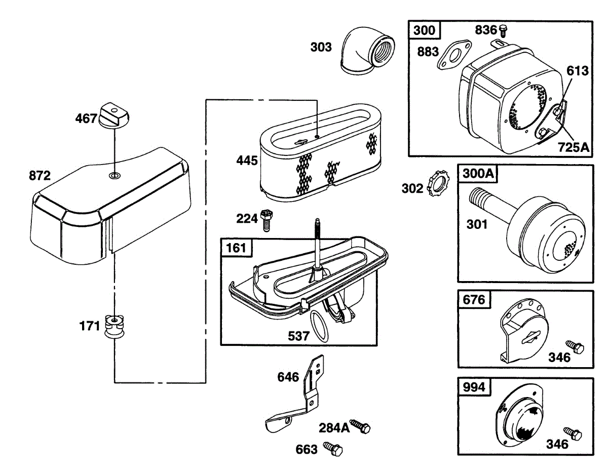 Parts for Briggs & Stratton 28C707-0118-99: Air Cleaner Grp, Muffler Grp Parts