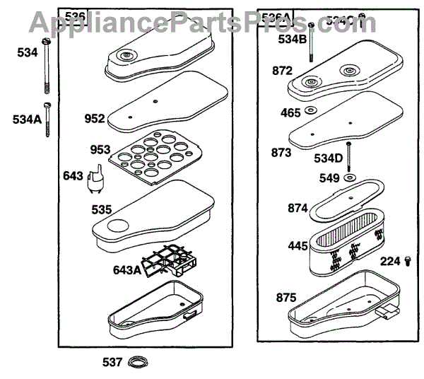 Parts for Briggs & Stratton 253707-0157-01: Air Cleaner Grps Parts