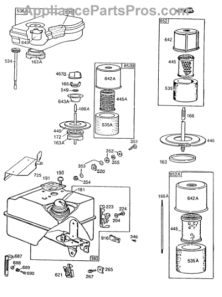 Parts for Briggs & Stratton 112202-0134-99: Air Cleaner Grps,Fuel Tank Parts